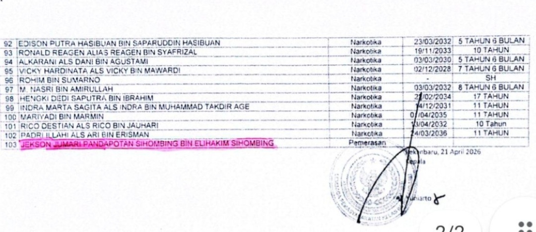 Diduga Ada Niat Jahat, Jekson Sihombing dari Lapas Pekanbaru Dikirim ke Nusakambangan