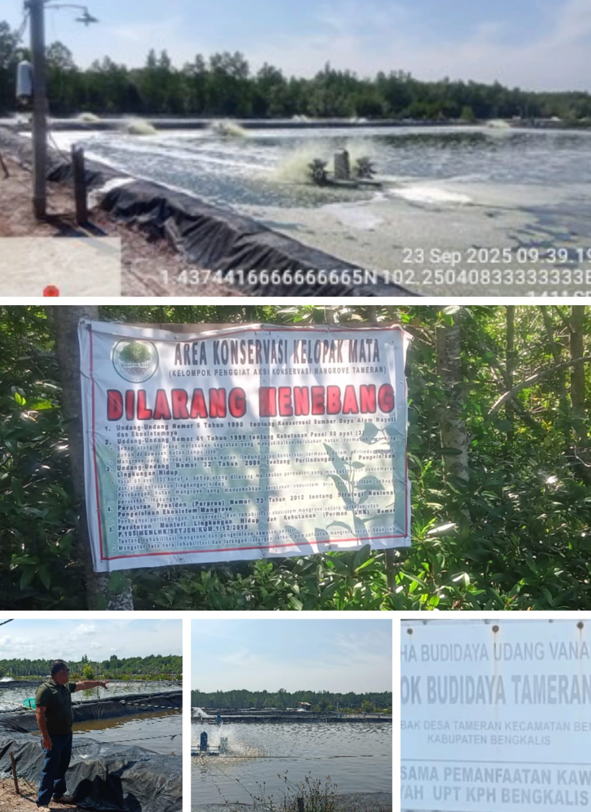 Tambak udang vaname ini juga memiliki nama kelompok budidaya Tameran Indah dengan lokasi di daerah jalan Ombak Kecamatan Bengkalis Kabupaten Bengkalis terindikasi bekingi oleh oknum KPH Bengkalis sebagaimana temuan yang tertulis pada papan plang yang terpasang pada pintu masuk areal tambak udang yang di juluki milik Asa diwilayah kedua desa Kecamatan Bengkalis tersebut.